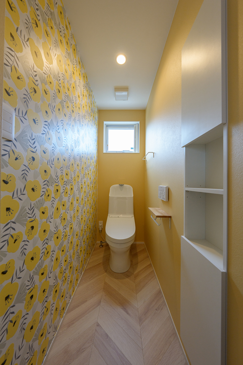 ビタミンカラーを取り入れた、明るく楽しい雰囲気のトイレ。